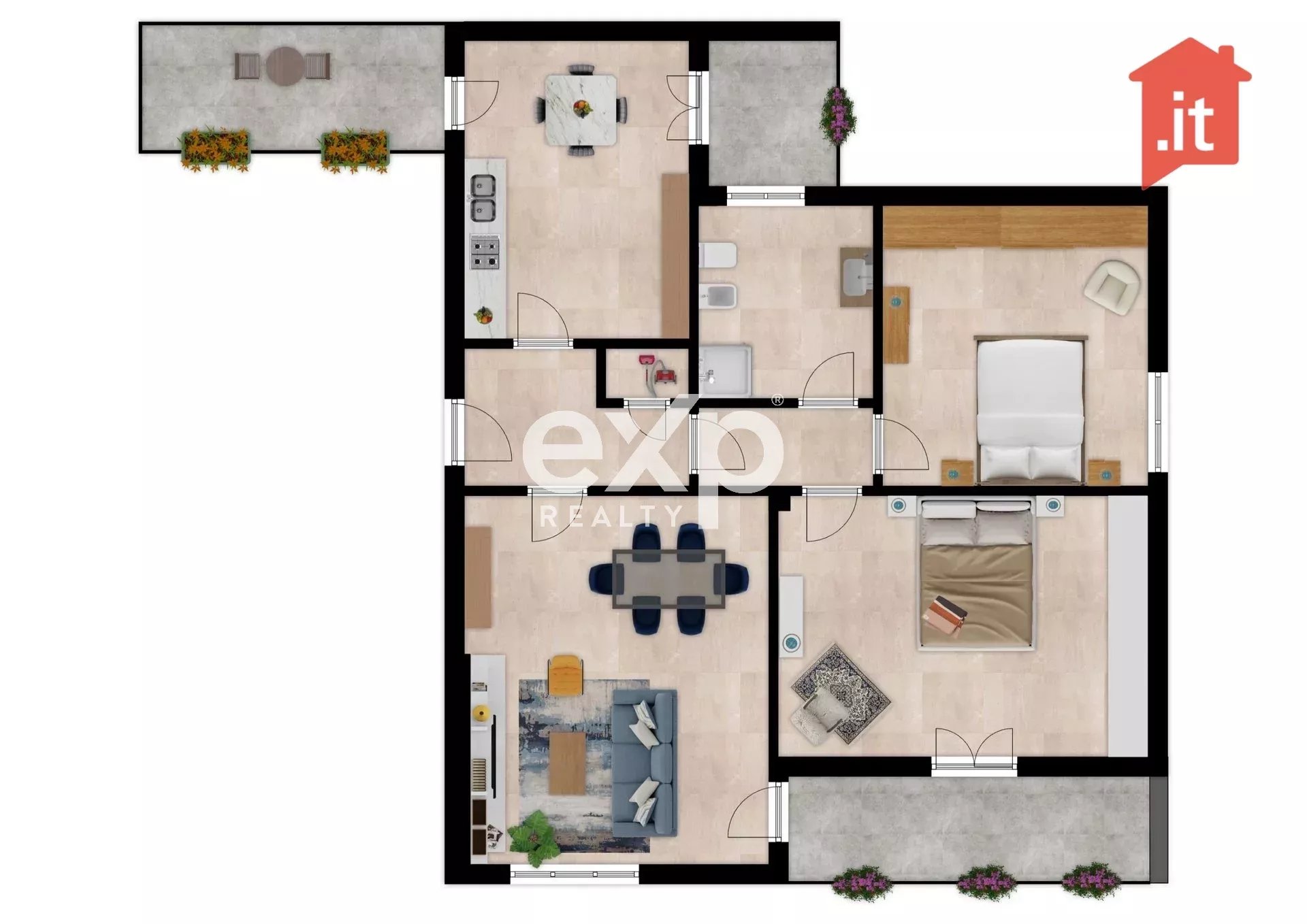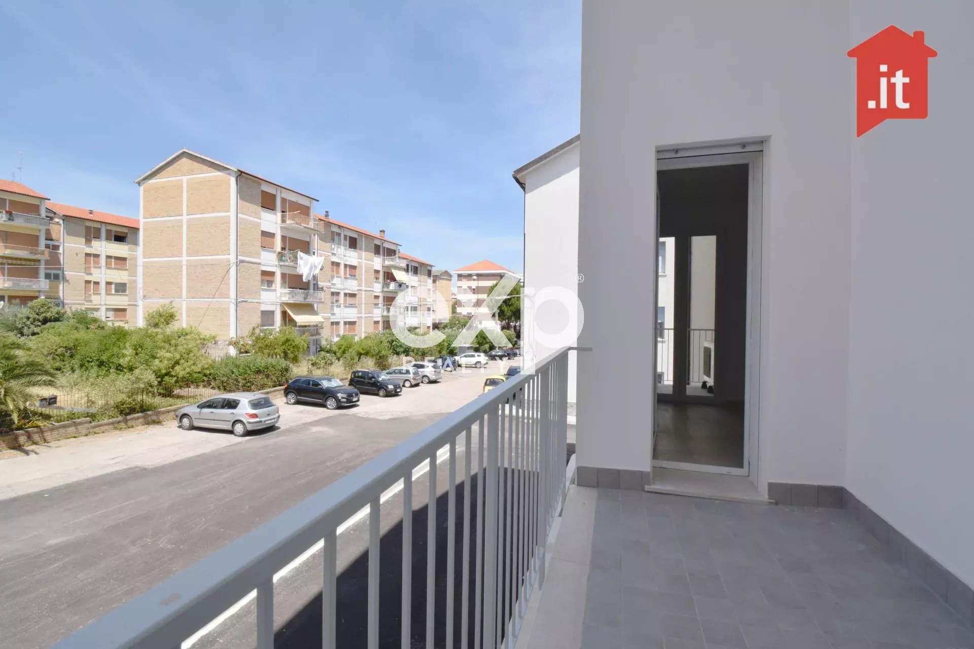 L’abitazione è composta da una zona giorno funzionale e ben distribuita, con ingresso centrale che collega la sala e la cucina, entrambe con accesso a balconi. La cucina dispone di un balcone ideale come stenditoio e di un altro più ampio, perfetto per una cena all’aperto o momenti di relax sotto il sole. La sala, con un balcone rivolto a est, offre invece una vista sul parco pubblico di Via Ciccarone, un’area perfetta in cui godersi il verde, magari con i bambini che giocano nella villetta.